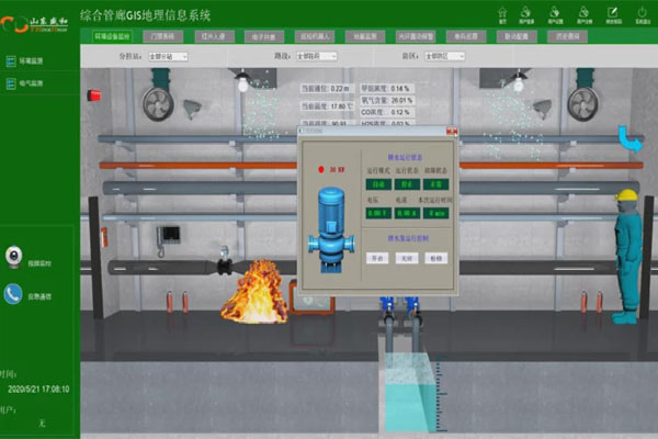 山東盛和電子有限公司城鎮(zhèn)綜合管廊地理信息管理平臺的基礎數(shù)據(jù)庫和服務器集成在監(jiān)控與報警統(tǒng)一管理信息平臺內(nèi),并在平臺上提供人機交互界面。系統(tǒng)預留與市政基礎設施地理信息系統(tǒng)聯(lián)通的通信接口。